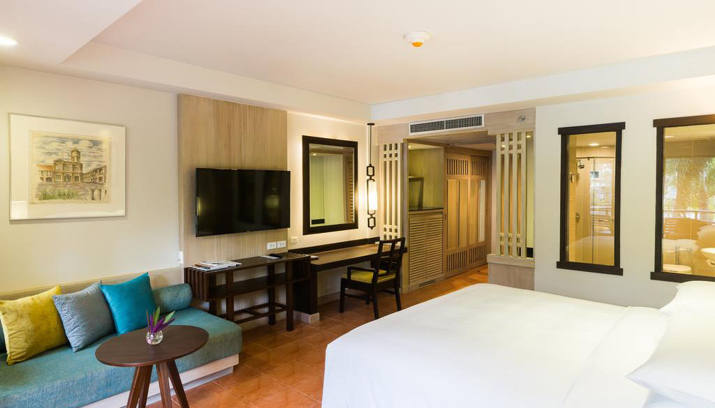 ห้องพักแต่ละห้องมีการตกแต่งทันสมัยพร้อมระเบียงส่วนตัว ติดตั้งโทรทัศน์จอแบนและตู้นิรภัย ห้องพักบางห้องมีทางเดินไปสระว่ายน้ำหรือชายหาดโดยตรง ห้องน้ำในตัวมีอ่างอาบน้ำและฝักบัวแยกเป็นสัดส่วน เครื่องเป่าผม รองเท้าแตะและมีเครื่องใช้ในห้องน้ำมีตราสินค้า THANN