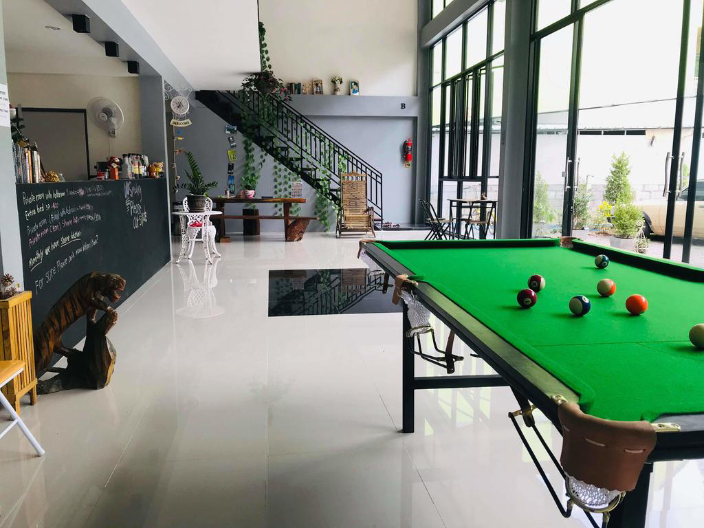 ผู้เข้าพักสามารถเล่นบิลเลียดที่โฮสเทล