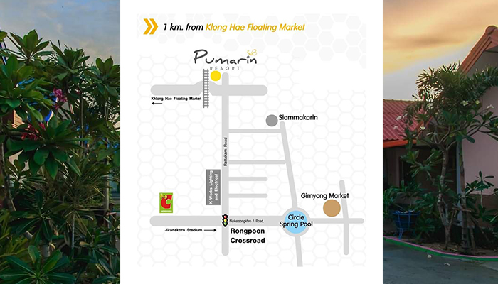 จุดเด่น : รีสอร์ทตั้งอยู่ห่างจากตลาดกิมหยงอันมีชีวิตชีวาไม่ถึง 3.5 กม. และห่างจากสนามบินหาดใหญ่ 14 กม.