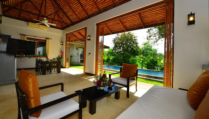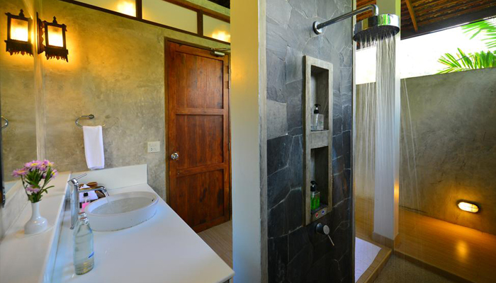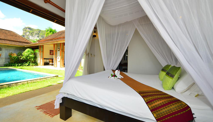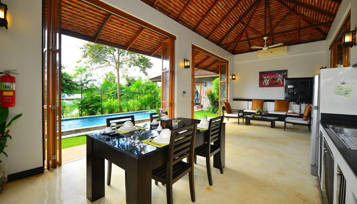 วิลลาที่ทันสมัยแต่ละหลังตกแต่งแบบไทย มีห้องครัวพร้อมอุปกรณ์ครบครัน ระเบียงส่วนตัว และเครื่องเล่นดีวีดี