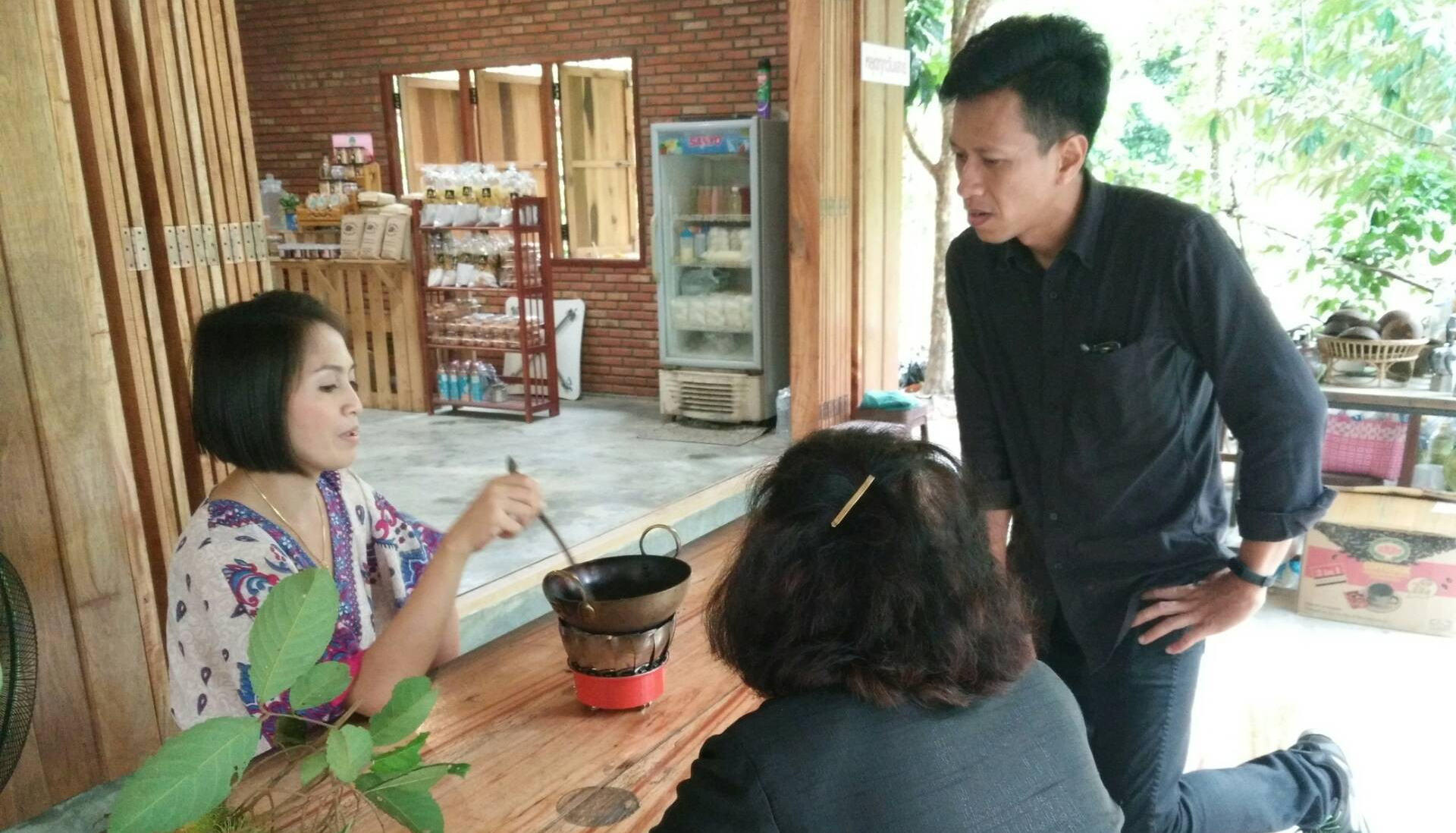 เจ้าของที่มาให้บริการเป็นผู้หญิง พูดจาดี แนะนำ ชวนคุย เป็นกันเองมากๆเลยครับ รู้สึกได้แบบไม่อึดอัดที่จะพูดคุยกับลูกค้า ให้ข้อมูลแบบเต็มที่ บรรยากาศเข้าถึง คอกาแฟ หรือคนที่ไม่ใช่คอกาแฟ ก็สามารถเข้าถึง บรรยากาศกาแฟได้ เพราะกาแฟ ที่กำลังคั่วตรงหน้าเรา กลิ่นหอมมาก จิบกาแฟคู่หมั่นโถวร้อนๆ ส่วนตัวผมชอบมาก ใครเป็นคอกาแฟไม่ควรพลาด ไม่ใช่คอกาแฟควรมาลองอย่างยิ่ง แค่สูดกลิ่น ความสุนทรีก็มาหา ความสุขแค่เอื้อมครับ มีธารน้ำใส ไหลเย็นให้ลงแช่คลายร้อนด้วยครับ