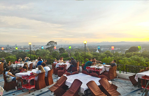 เป็นจุดหมายหนึ่งที่นักท่องเที่ยวมักแวะมาเยือนเมื่อมาเที่ยวเขาคอหงส์ โดยเฉพาะยามเย็นที่สามารถรื่นรมย์กับทิวทัศน์เมืองหาดใหญ่ ชมพระอาทิตย์ตกดินและแสงสีของตัวเมืองในยามค่ำคืนไปพร้อมกับอาหารรสเลิศ ไม่ว่าจะเป็นขาหมูทอดที่ขายดิบขายดีเป็นเมนูยอดนิยมของร้าน จุดเด่นคือความกรอบของหนังหมูที่พอกัดเข้าไปจะพบกับเนื้อในที่นุ่มนวลฉ่ำลิ้น เสิร์ฟพร้อมน้ำจิ้มและขิงดอง หรือจะเป็นยำข้างโป๊ะ เอาใจซีฟู้ดเลิฟเวอร์ เพราะคัดสรรกุ้ง หมึก ปลาลวกที่สดและหวาน ราดด้วยน้ำยำรสจี๊ดจ๊าดสะใจ นอกจากนี้ยังมีปูนิ่ม แกงเผ็ดเป็ดย่าง แพะน้ำแดง ยำผักบุ้งกรอบ ยำผักกูด ฯลฯ สั่งเมนูไหนก็อร่อยได้เต็มปากเต็มคำจริงๆ