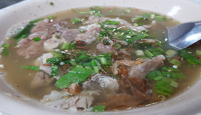 “เล้งแซ่บ ลุงหมู ร้านอาหารหาดใหญ่ยอดนิยมย่านถนนสามชัย ที่นี่เป็นกึ่ง ๆ รถเข็นมีโต๊ะตั้งริมทางเดิน 4-5 ชุดไว้นั่งกิน แน่นอนว่าต้องสั่ง “เล้ง” มาลอง ส่วนรสชาตินั้น ให้สังเกตจากพริก! มีความร้อนแรงมากค่ะ น้ำซุปโล่งคอมากมาย เปรี้ยวแซ่บ เนื้อหมูนุ่มชิ้นใหญ่ เนื้อเยอะ ไม่ผิดหวังกับร้านอร่อยหาดใหญ่ร้านนี้เลยค่ะ”