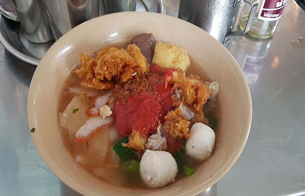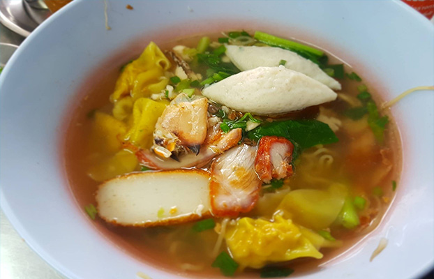“มองหาร้านอาหารในสงขลาย่านเมืองเก่า ก็เจอร้านนี้เข้าครับ เมนูเด็ดตามชื่อร้าน “เย็นตาโฟต้มยำ” เสิร์ฟมาชามใหญ่ น้ำซุปรสกลมกล่อมแบบไม่ต้องปรุงเพิ่ม เปรี้ยวหวานกำลังดี แถมลูกชิ้น กุ้งทอด หมึกกรอบก็ชิ้นอิ่ม ๆ น่ากินทั้งนั้นเลยครับ วันนี้สั่ง “บะหมี่เกี๊ยวปู” โปะหมูแดงและลูกชิ้นปลามาด้วย เยอะหน้ามาชนิดที่ว่าเกือบไม่เห็นเส้น พร้อมกับน้ำซุปกระดูกหมู หน้าตาน่ากินสุด ๆ ส่วนรสชาติก็โอเคครับทั้งเส้น ทั้งเครื่องและซุป นอกจากนี้ก็ยังขาย “ข้าวหมูเเดงหมูกรอบ” กุนเชียง ไข่ต้มผ่าซีก ราดด้วยน้ำซอสชุ่มฉ่ำ และมี “ขาหมู” ด้วยครับ เป็นร้านอาหารสงขลาที่ถูกและดีจริง ๆ”