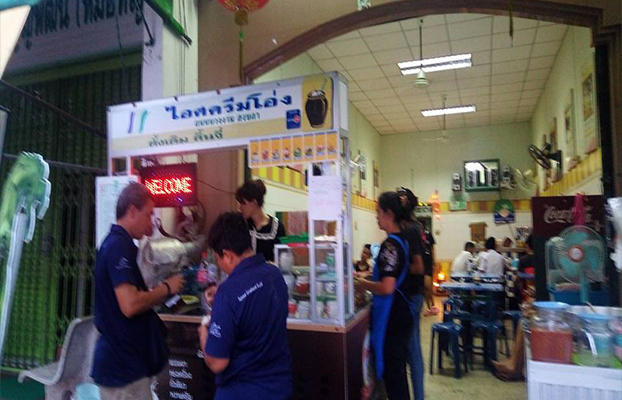 ตรงกันข้ามกับร้านก๋วยเตี๋ยวในรูก็จะเป็น ร้านไอติมโอ่ง (ร้านไอติมเยอะจริงๆ) ร้านไอติมโอ่ง ค่อนข้างป๊อปปูล่าในหมู่เด็กวัยรุ่น โดยเฉพาะเด็กนักเรียนมัธยมครับ ช่วงเย็นๆวัยรุ่นเต็มร้านเลย บรรยากาศร้านก็ธรรมดาเป็นห้องแถวไม่ได้ตกแต่งหวือหวาแต่อย่างใด