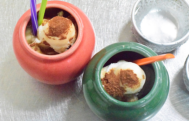 โดยสามารถเลือกสั่งท๊อปปิ้งได้ 6 แบบคือ ทรงเครื่อง (ใส่เครื่องโน้นนี้นั้น) ถั่วเขียว หวานครีม (ผสมเฮลบลูบอย) ยกล้อ (ใส่น้ำโค้ก) เรนโบว์ และ ใส่ไข่ ทุกเมนูเสิร์ฟมาในโอ่งดินเผาเล็กๆ ราคาไม่แพงครับอยู่ที่จะประมาณ 20 บาทเท่านั้นเอง (สามารถสั่งซื้อกลับบ้านได้ จะแถมโอ่งให้ด้วย)
