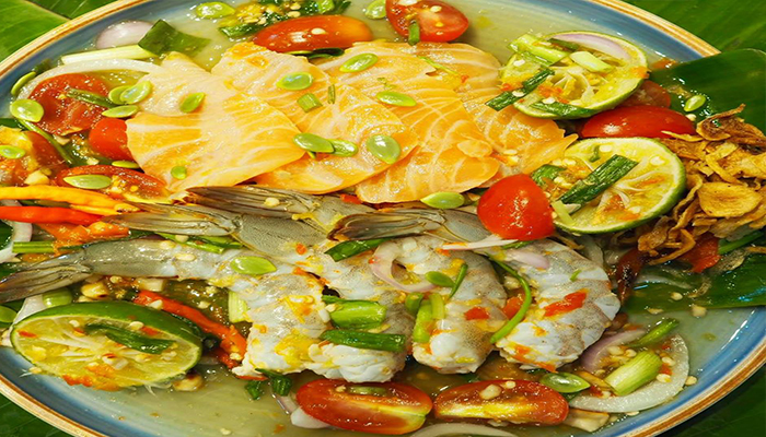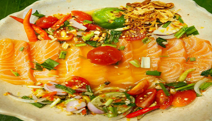 เมนูแนะนำ : ลาบหางปลาแซลมอนทอด