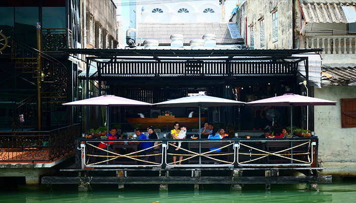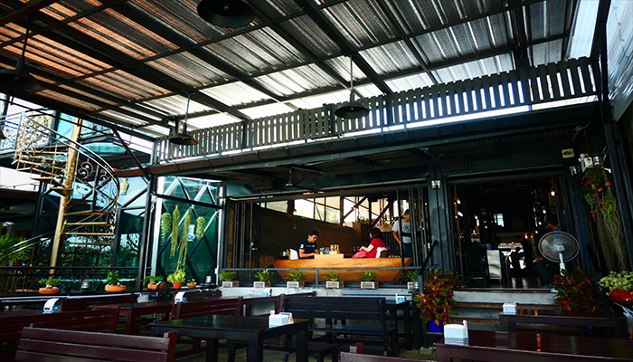 อยู่ในเมืองเก่า ถนน นครนอก ร้านเป็นตึกแถวห้องเดี่ยว ตรงข้ามสถานที่เที่ยวบ้านเก่า บ้าน นครไทย จอดรถ ริมถนน ร้านแบ่งเป็นโซนที่นั่งหน้าร้าน และที่นั่งหลังร้าน 7 โต๊ะ มีที่นั่งด้านล่างจัดระดับชั้นลงไปติดริมทะเลสาบ