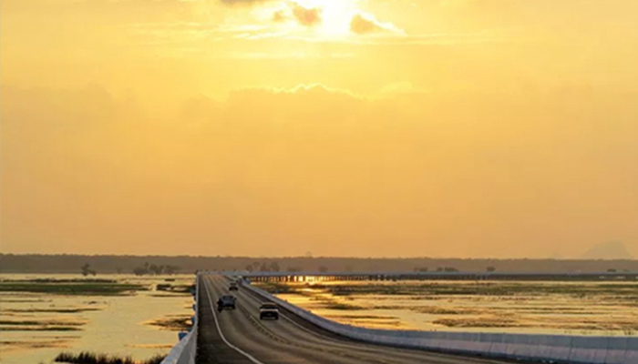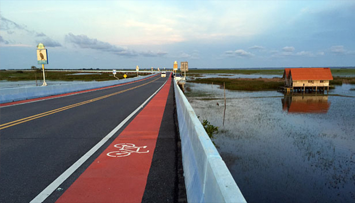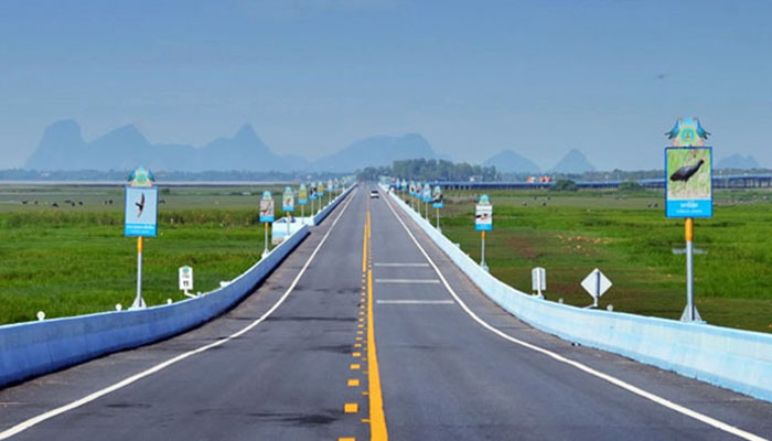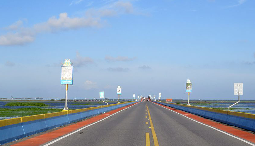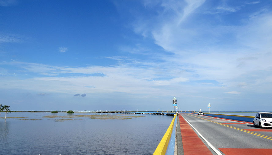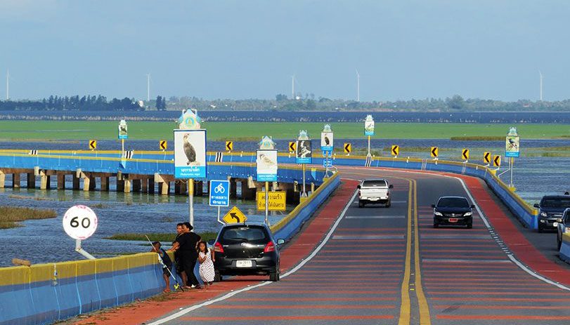 จุดเด่น : ระหว่างสองข้างทางของสะพานมีวิวธรรมชาติที่สวยงาม มีจุดจอดรถเพื่อให้ได้ดูและสัมผัสกับชีวิตของสัตว์ที่อยู่ในบริเวณนั้น มีทั้งฝูงนกน้ำ ฝูงควายน้ำหนึ่งเดียวในโลก