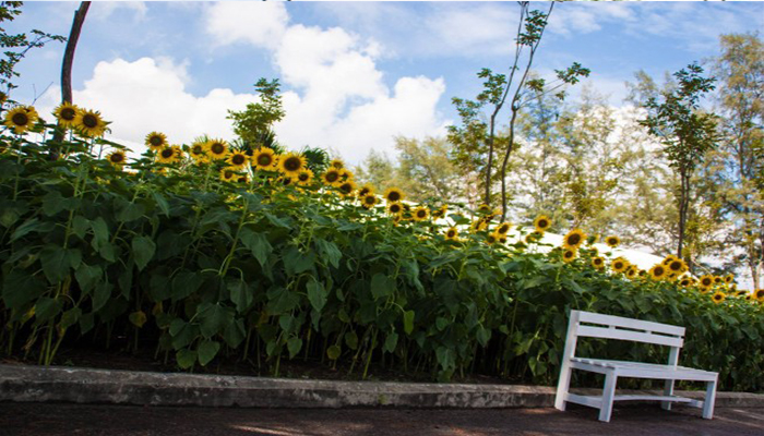 ตั้งอยู่ที่ ต.บ่อยาง ถ.ชลาทัศน์ อ.เมืองสงขลา จ.สงขลา ริมถนนเลียบชายหาดสมิหลาก่อนจะถึงสนามกีฬาติณสูลานนท์จำนวนพื้นที่ใช้ปลูก 10 ตารางเมตร เหมาะสำหรับการเข้ามาเยี่ยมชมพักผ่อนและถ่ายรูป ด้วยบรรยากาศลมพัดเย็นสบายบรรจบกับสวนสนตลอดแนวชายหาดสมิหลา ที่ผู้เดินทางมายังจังหวัดสงขลา ต้องมาเยือน