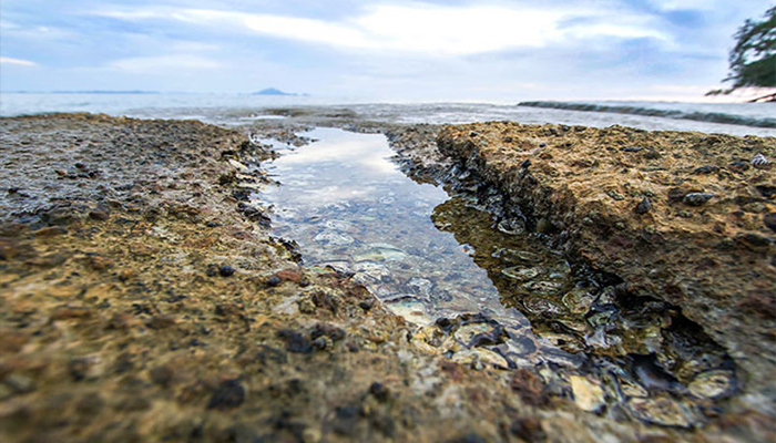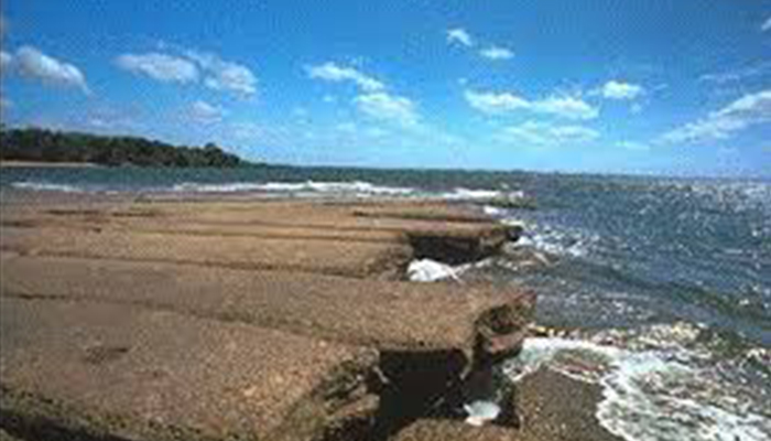 สภาพเป็นลานหินกว้างยื่นลงไปในทะเล เมื่อเข้าไปดูใกล้ๆ จะเห็นเป็นซากหอยอัดแน่นจนกลายเป็นหาดหินริมทะเลมหัศจรรย์แห่งลานหินกว้างใหญ่ที่กลายเป็นสุสานซากฟอสซิลหอยอายุราว 40 ล้านปีจากการคำนวนอายุทางธรณีวิทยา เดิมบริเวณนี้เป็นหนองน้ำจืดขนาดใหญ่ มีหอยอาศัยอยู่จำนวนมาก โดยเฉพาะหอยขมที่มีขนาดราว 2 เซนติเมตร ครั้นเกิดการเปลี่ยนแปลงบนพื้นผิวโลก น้ำทะเลไหลเข้ามาท่วมหนองน้ำจนหมด ธาตุหินปูนในน้ำทะเลได้จับตัวเปลือกหอยใต้น้ำจนเป็นเนื้อเดียวกัน แล้วกลายเป็นแผ่นหินแข็งที่เรียกว่า Shelly Limestone หนาประมาณ 40 เซนติเมตร เมื่อแผ่นดินถูกยกตัวขึ้นสูง ซากฟอสซิลเหล่านี้จึงปรากฏให้เห็น