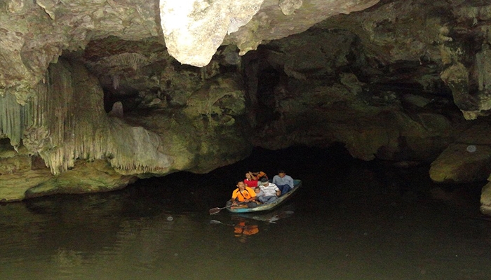 เป็นถ้ำที่มีสายน้ำไหลผ่านและไหลล้อมรอบภูเขาอันเป็นที่ตั้งของถ้ำ การเดินทางเข้าไปชมภายในนั้นจะต้องเริ่มต้นด้วยการนั่งเรือในบางจุดแล้วจึงค่อนเดินสำรวจถ้ำต่าง ๆ อันได้แก่ ถ้ำเจ้าสาว ถ้ำรากไทร ถ้ำคนธรรพ์ เป็นต้น โดยมีระยะทางสำรวจถ้ำทั้งหมดประมาณ 4 กิโลเมตร ช่วงเวลาที่น่าตื่นเต้นและหวาดเสียวที่สุดของการท่องถ้ำเลเขากอบคือตอนที่ต้องนอนราบขนานไปกับลำเรือเพื่อลอดผ่านส่วนที่มีเพดานต่ำที่สุดของถ้ำที่เรียกกันว่า “ถ้ำลอด”