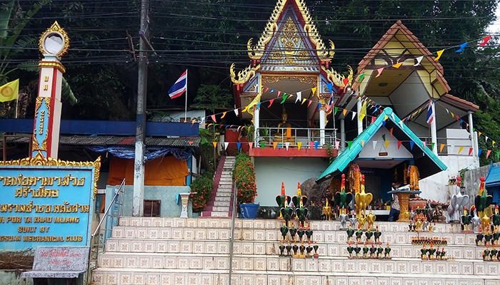 ตั้งอยู่ริมถนนเอเชีย เป็นศาลฯ ที่ชาวหลังสวนตลอดจนผู้ที่ขับรถผ่านไปมาให้ความเคารพ และนิยมมาบนบานศาลกล่าวในเรื่องต่างๆ เมื่อประสบความสำเร็จจะมาจุดประทัดเพื่อเป็นการแก้บน อีกทั้งบริเวณเชิงเขายังมีกุฏิพระ และถ้ำที่สามารถเข้าไปชมธรรมชาติได้