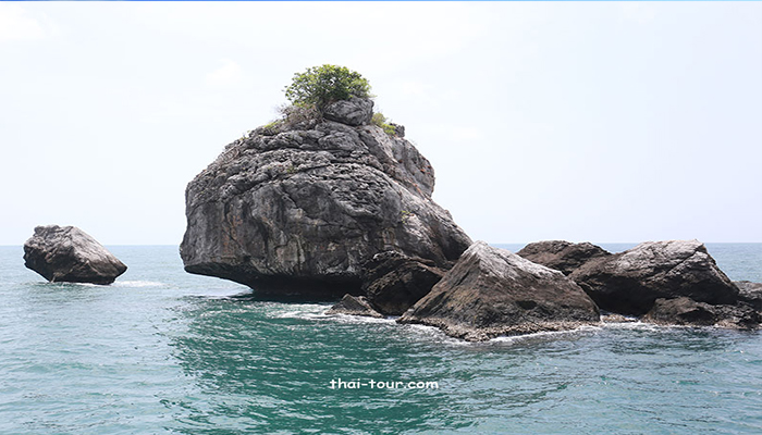 น่าอัศจรรย์ที่รูปร่างของภูเขาหินปูนทั้ง 3 ลูก คล้ายคลึงกับส่วนหัวของแรด จนเกิดเป็นที่มาของชื่อ “เกาะหลักแรด” อีกทั้งความงดงามด้านล่าง ยังเปรียบดั่งสวรรค์ เพราะมีภูเขาดอกไม้ทะเลอันสมบูรณ์ และงามสะพรั่งอีกด้วย