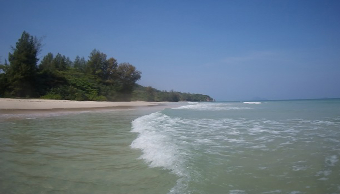 จุดเด่น : ชายหาดโค้งยาวคล้ายเสี้ยวพระจันทร์ มีหาดทรายสีขาวทอดยาว น้ำทะเลที่นี่สีเขียวมรกต