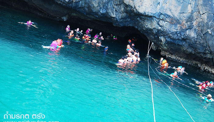 ถ้ำมรกต ตั้งอยู่ที่เกาะมุกซึ่งเป็นเป็นเกาะใหญ่อีกเกาะหนึ่งในน่านน้ำตรัง เป็นถ้ำมหัศจรรย์กลางทะเล ที่มีชื่อเสียงของ จ.ตรัง นักท่องเที่ยวที่เดินทางไปเที่ยวทะเลตรัง จะไม่พลาดกับการเดินทางเข้าชมถ้ำมรกต ซึ่งถือว่าเป็น Unseen in Thailand จาก ปากทางเข้าถ้ำเป็นโพรงเล็กๆ สูงพ้นระดับน้ำพอเรือลอดได้ หรือต้องว่ายน้ำเข้าไปถ้าหากน้ำมาก ระยะทาง 80 เมตร บริเวณปากทาง เข้าถ้ำแสงจากภายนอกจะสะท้อนกับน้ำภายในถ้ำทำให้เห็นน้ำเป็นสีเขียวมรกต ดูแปลกตาและสวยงามตามธรรมชาติอย่างยิ่งเมื่อพ้นปากถ้ำออก มาอีกด้านหนึ่งจะเห็นหาดทรายขาวสะอาดล้อมรอบด้วยหน้าผาสูงชัน& ถ้ำมรกรตนี้จะเข้าออกได้เฉพาะ ช่วง น้ำลงเท่านั้น
