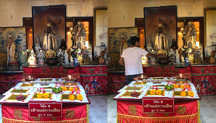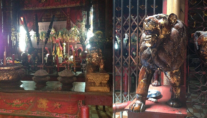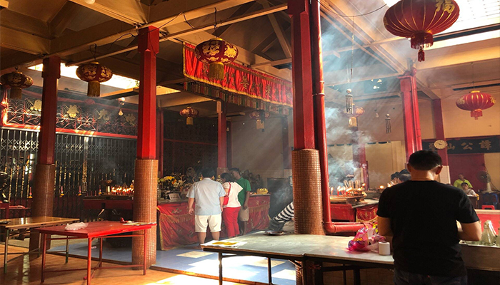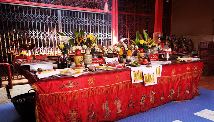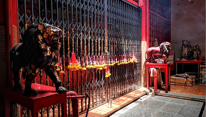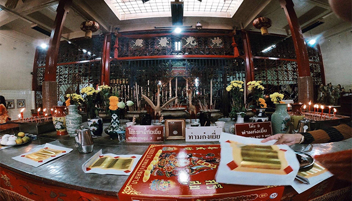 มาสักการะสิ่งศักดิ์สิทธิ์คู่บ้านคู่เมืองชาวตรังกันก่อนกับ “ศาลเจ้าท่ามก๋งเยี่ย” ตั้งอยู่บนถนนเพลินพิทักษ์ เป็นศาลเจ้าที่คนส่วนมากนิยมมากราบไหว้ขอพร เพราะแม่นในเรื่องของเซียมซีมาก และคนที่มาขอพรในสิ่งที่ปราถนาก็มักจะสมหวัง ถ้าใครที่ไปไหว้พระที่ศาลเจ้าแห่งนี้บ่อยๆ ก็จะสังเกตเห็นหมูย่าง เพราะจะมีคนนำมาแก้บนอยู่เนื่องๆ และส่วนใหญ่ที่นิยมแก้บนก็คือประทัดทั้งหมด 1,000 นัด