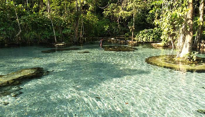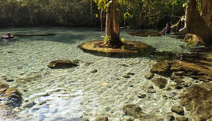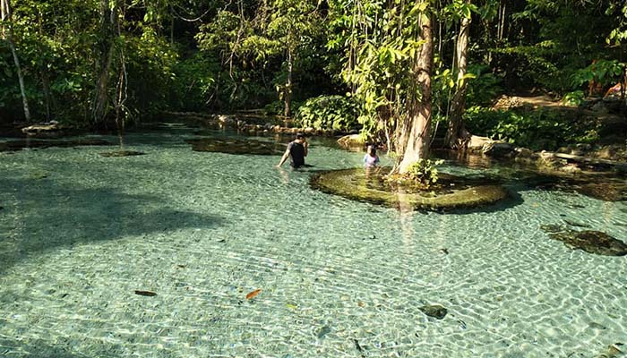 อากาศร้อนๆ แบบนี้ก็ต้องมาคลายร้อนกันหน่อย กับการทำกิจกรรมลงเล่นน้ำในบ่อน้ำผุด ซึ่งนักท่องเที่ยวส่วนใหญ่ต่างก็ไม่พลาดกิจกรรมนี้ เพราะด้วยน้ำที่ใสสะอาดจึงทำให้ใครก็ไม่สามารถต้านทานความต้องการที่จะสัมผัสกับสายน้ำที่เย็นฉ่ำได้ และเมื่อเข้ามาเยือนที่นี่แล้วก็อย่าพลาดที่จะแวะมาเล่นน้ำคลายร้อนกันอย่างเด็ดขาด