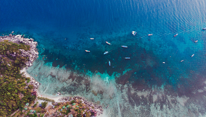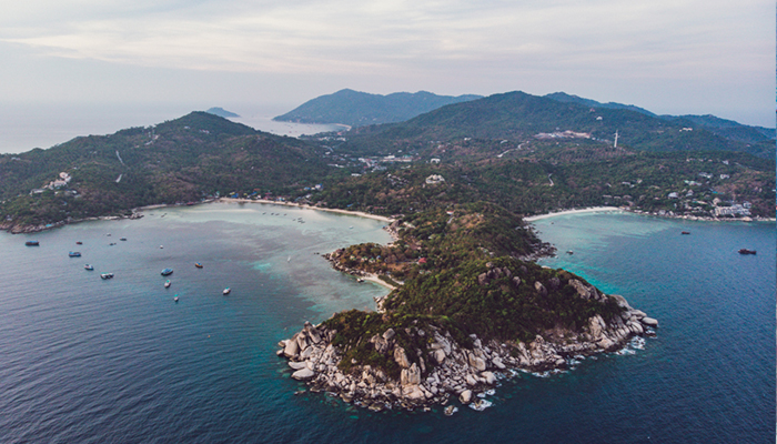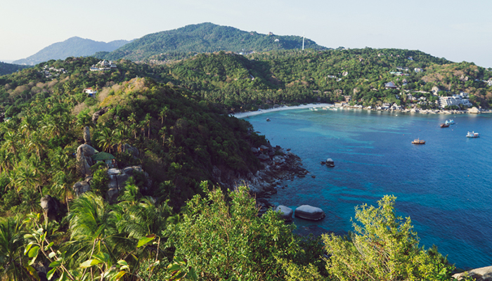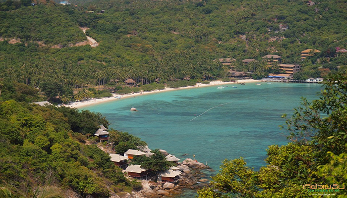 ถ้าพูดถึงเกาะเต่า นอกจากการดำน้ำดูฝูงปลาและปะการังที่สวยงามแล้ว บนเกาะเต่ายังมีที่เที่ยวอื่น ๆ อีกมากมาย อย่างอ่าวม่วงที่มีทั้งวิวและรีสอร์ตสวย ๆ บางร้านอาหารก็สามารถเห็นวิวอ่าวจากมุมสูงได้ หรือถ้าอยากเห็นทะเลแหวกมุมดี ๆ ก็สามารถถ่ายมุมสูงจากเกาะนางยวน เก็บบรรยากาศโดยรอบที่มีต้นไม้สีเขียวขจีสดชื่น ทิวต้นมะพร้าวกั้นระหว่างกลาง อ่าวทั้งสองมีน้ำทะเลใส ๆ ไล่สี มีหินเกาะแก่งสวย ๆ
