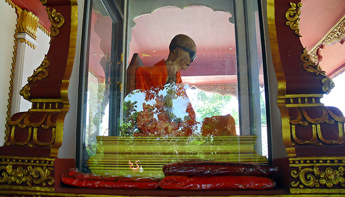 หลวงพ่อแดงหรือพระครูสมถกิตติคุณท่านเป็นชาวเกาะสมุยตั้งแต่กำเนิด ครองสมณะเพศ 29 ปี 8 เดือน ก่อนจะมรณะภาพ รวมศิริอายุ 79 ปี 8 เดือน ท่านเป็นพระที่มีความรู้แตกฉานเชี่ยวชาญในวิชาวิปัสสนาธุระ ขณะที่มีชีวิต ท่านเป็นพระที่เคร่งปฏิบัติ ท่านฉันท์ภัตตาหารเพียงมื้อเดียว คือฉันท์ในบาตรตั้งแต่แรกบวชจนกระท่านดับสังขาร วัดคุณารามเป็นวัดสุดท้ายที่ท่านอยู่ ความน่าอัศจรรย์ของท่านคือท่านหยั่งรู้ถึงการแตกดับของตัวเอง โดยท่านได้บอกกับคนใกล้ชิดว่าท่านจะมรณะในเดือน 6 ปีพ.ศ.2516 และให้ศิษย์และคนใกล้ชิดทำหีบศพแบบนั่งขัดสมาธิให้ใบหนึ่งแต่ลูกศิษย์ไม่เชื่อเพราะถึงแม้ว่าท่านจะป่วยแต่ว่าร่างกายท่านยังทรงแข็งแรงอยู่มากนัก แต่เมื่อเดือน 6 มาถึง ท่านได้มรณะภาพจริงตามที่ท่านได้บอกไว้ เหล่าลูกศิษย์จึงเร่งทำหีบและบรรจุสังขารของท่านตามที่ท่านสั่งไว้และประดิษฐานไว้บนศาลาวัดคุณาราม นับจากวันที่ท่านมรณะภาพจนกระทั่งปัจจุบันนี้นับเป็นเวลาร่วมหลายสิบปีแต่สังขารท่านก็ยังคงไม่เน่าเปื่อยและยังคงอยู่ในท่านั่งขัดสมาธิให้ชาวบ้านและนักท่องเที่ยวได้กราบไหว้ขอพร