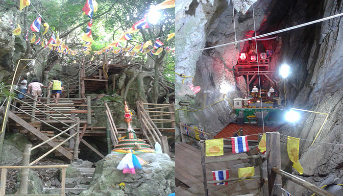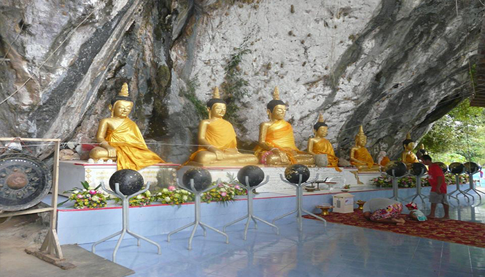 ตามหลักฐานที่ปรากฏได้จารึกไว้ว่าสร้างมาตั้งแต่สมัยศรีวิชัยตอนต้น หรือในยุคของกษัตริย์คนสำคัญคือ พระเจ้าศรีธรรมโศกราช และพระเจ้าจันทรภาณุศรีธรรมราช เป็นวัดที่เก่าแก่มีอายุประมาณ 800 กว่าปี มีพระพุทธรูปสีทองจำนวนมากถึง 29 องค์ ซึ่งพระพุทธรูปเหล่านั้นประดิษฐานอยู่รอบๆ ภูเขาทางด้านทิศตะวันออก เป็นพระปูนปั้นด้วยปูนขาวผสมด้วยน้ำผึ้งอ้อย และน้ำมันยาง ส่วนโครงสร้างภายในเป็นโครงสร้างที่ทำด้วยไม้เนื้อแข็งทั้งหมด ทั้งที่ยังคงสภาพสมบูรณ์อยู่จำนวน 20 กว่ารูป และทั้งซากปรักหักพังประมาณ 40 - 50 รูป ตามตำนานเล่าต่อกันมาว่า ในสมัยที่มีการสร้างพระบรมธาตุนครศรีธรรมราช พระนางเหมชาลาได้นำคนและสิ่งของมาช่วยงานก่อสร้างพระบรมธาตุนครศรีธรรมราช เมื่อมาแวะพักระหว่างทางจึงได้สร้างพระพุทธรูปสีทองขึ้นเป็นจำนวนมาก ในบรรดาพระพุทธรูปสีทอง 29 องค์ มีพระพุทธรูปอยู่องค์หนึ่ง ซึ่งมีขนาดใหญ่ที่สุดที่ชาวบ้านเรียกว่า "หลวงพ่อองค์ใหญ่" ที่ด้านหลังผนังถ้ำของหลวงพ่อองค์ใหญ่เยื้องไปทางด้านซ้าย มีรอยฝ่ามือขนาดใหญ่ปรากฏอยู่บนแผ่นหิน ซึ่งเป็นที่อัศจรรย์ใจแก่ผู้ที่ขึ้นไปกราบไหว้ขอพร นอกจากนี้หลวงพ่อองค์ใหญ่ยังเป็นพระพุทเป็นวัดที่เก่าแก่มีอายุประมาณ 800 กว่าปี มีพระพุทธรูปสีทองจำนวนมากถึง 29 องค์ ซึ่งพระพุทธรูปเหล่านั้นประดิษฐานอยู่รอบๆ ภูเขาทางด้านทิศตะวันออก เป็นพระปูนปั้นด้วยปูนขาวผสมด้วยน้ำผึ้งอ้อย และน้ำมันยาง ส่วนโครงสร้างภายในเป็นโครงสร้างที่ทำด้วยไม้เนื้อแข็งทั้งหมด ทั้งที่ยังคงสภาพสมบูรณ์อยู่จำนวน 20 กว่ารูป และทั้งซากปรักหักพังประมาณ 40 - 50 รูป