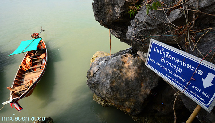 เกาะนุ้ยนอก เกาะเล็กกลางทะเลในอำเภอขนอม จังหวัดนครศรีธรรมราช แต่มีสิ่งที่มหัศจรรย์บนเกาะ ทำให้เกาะแห่งนี้กลายเป็นสถานที่ Unseen เนื่องจากบนเกาะนี้มีบ่อน้ำจืดที่มีรูปร่างคล้ายกับรอยเท้า สามารถมองเห็นได้ในตอนที่น้ำทะเลลดลง ถ้าเป็นช่วงที่น้ำขึ้น บ่อน้ำนี้ก็จะถูกน้ำทะเลท่วมหมด เชื่อกันว่าพื้นที่แห่งนี้คือบริเวณที่เกิดตำนาน “หลวงปู่ทวดเหยียบน้ำทะเลจืด” เกาะนุ้ยนอก มีทางบันไดเดินขึ้นไปก็สะดวกเพื่อไปไหว้หลวงปู่ทวด ข้างบนมีจุดชมวิว สามารถมองเห็นเกาะสลับซับซ้อน บริเวณรอบๆ หากไปช่วงที่น้ำลงสามารถเดินข้ามไปมาระหว่างเกาะได้อย่างสบาย บนเกาะยังมีห้องน้ำไว้บริการนักท่องเที่ยวด้วย