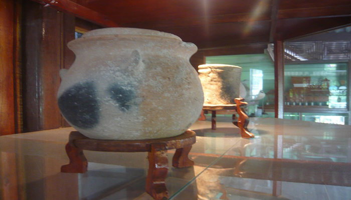1.ห้องภูมิหลัง จัดแสดงเครื่องมือเครื่องใช้ เครื่องปั้นดินเผาตั้งแต่ยุคก่อนประวัติศาสตร์ สมัยลังกาสุกะ