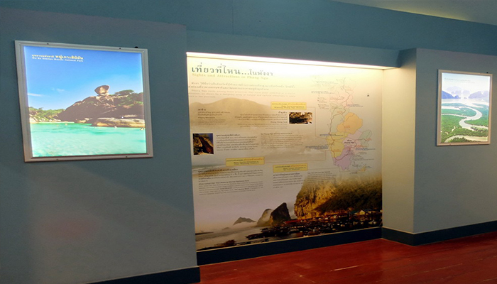 พิพิธภัณฑ์เมืองพังงา เล่าเรื่องราวรากเหง้าประวัติศาสตร์ของชาวพังงา พิพิธภัณฑ์เมืองพังงา ตั้งอยู่ในอาคารศาลากลางจังหวัดพังงา (หลังเก่า) ตำบลท้ายช้าง อำเภอเมืองพังงา อาคารหลังนี้ถูกสร้างขึ้นเมื่อปี พ.ศ.2473 (ตรงกับรัชสมัยพระบาทสมเด็จพระปกเกล้าเจ้าอยู่หัว รัชกาลที่ 7) เพื่อใช้เป็นศาลากลางจังหวัดพังงา เนื่องจากอาคารหลังดังกล่าวมีความสำคัญและเกี่ยวข้องกับประวัติศาสตร์ของเมืองพังงา จึงได้รับการขึ้นทะเบียนจากกรมศิลปากรให้เป็นโบราณสถานของชาติ เมื่อ พ.ศ.2530 และต่อมาจังหวัดพังงาก็ได้ปรับปรุงให้เป็นพิพิธภัณฑ์เมืองพังงา โดยเปิดให้เข้าชมในวันจันทร์-วันศุกร์ เวลา 09.00 น.-16.00 น. อาคารพิพิธภัณฑ์เมืองพังงา เป็นสถาปัตยกรรมแบบอาณานิคม หรือโคโลเนียล ซึ่งได้รับอิทธิพลทางวัฒนธรรมจากยุโรป ตัวอาคารมีลักษณะเป็นอาคารขนาดใหญ่ชั้นเดียว ทาด้วยสีเหลือง และประดับตราครุฑไว้หน้าอาคาร ภายในอาคารแห่งนี้ถูกแบ่งเป็นห้องต่างๆ เพื่อจัดแสดงนิทรรศการเกี่ยวกับเมืองพังงา ซึ่งมีทั้งหมด 6 ห้อง ดังนี้ ห้องจัดแสดงที่ 1 รู้เรื่องเมืองพังงา : ห้องแรกนี้ จะให้ความรู้พื้นฐานทางภูมิศาสตร์และแหล่งท่องเที่ยวที่สำคัญในจังหวัดพังงา โดยแบ่งการจัดแสดงเป็น 2 ส่วน คือ