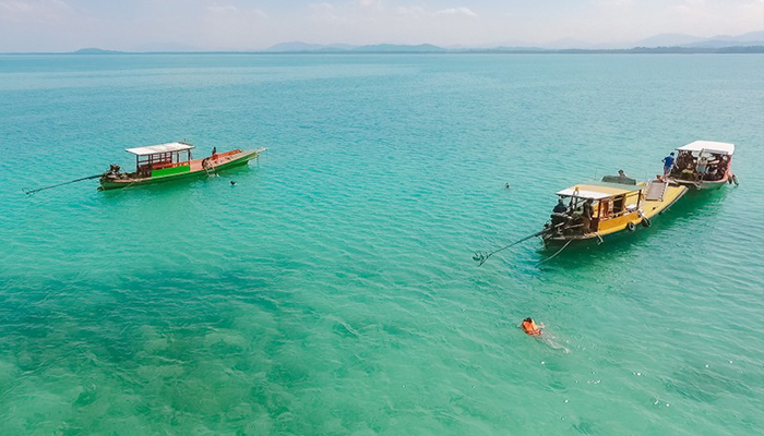 มีน้ำทะเลใส สีสวย และมีปะการัง จำนวนมาก เป็นแหล่งดำน้ำกำลังได้รับความนิยมในเวลานี้ อดีตเคยมีต้นสนน้อย-ใหญ่ ตั้งเรียงรายเต็มไปหมด และต้นไม้อื่นๆ นานาชนิด ให้ความร่มรื่นได้พักหลบแดดคลายร้อน แต่หลังเกิดสึนามิ ปัจจุบันไม่มีอะไรอยู่ที่นั่น เรียบเหมือนผ้า มีแต่เพียงชายหาดและน้ำทะเลเท่านั้น เงียบสงบเหมาะสำหรับการพักผ่อน เป็นเกาะเล็กที่อยู่ทางด้านตะวันตก ซึงสามารถมองเห็นได้จากชายหาดเกาะคอเขา ซึ่งมีแนวปะการังอ่อนที่กำลังเติบโตตามแนวเกาะ นักท่องเที่ยวสามารถเล่นน้ำ ดำน้ำ ตกปลา และอาบแดด