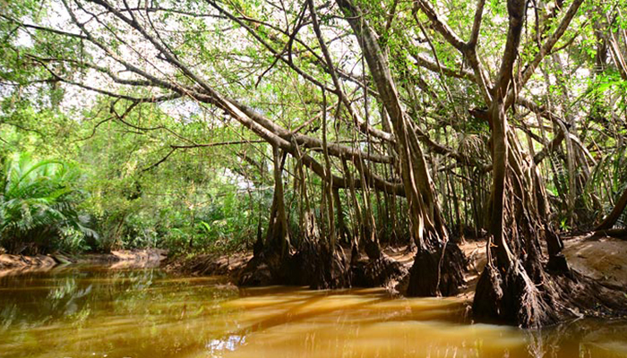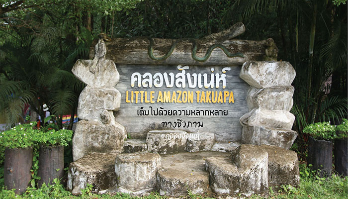 เป็นคลองสายสั้นๆ ที่มีต้นน้ำมาจากเขาบางเต่าก่อนจะไปสิ้นสุดที่แม่น้ำตะกั่วป่า เป็นผืนป่าเล็กๆ ที่เต็มไปด้วยความหลากหลายทางชีวภาพ แต่ที่หลายคนคุ้นเคยน่าจะเป็นการล่องเรือชมงู ที่มีทั้งงูเขียว งูปล้องทอง และงูเหลือม ซึ่งการล่องเรือควรมาล่องในช่วงเช้าดีที่สุด น้ำจะเริ่มขึ้นเวลาประมาณ 9 ถึง 10 โมง อากาศไม่ร้อน ได้เห็นแสงอ่อนๆ กระทบกับต้นไม้น้อยใหญ่ การล่องเรือมีระยะทางประมาณ 2 กิโลเมตรใช้เวลาประมาณ 1 ชั่วโมง แต่ถ้าใครสนใจไปล่องแนะนำว่าโทรเช็คเรื่องน้ำขึ้นน้ำลงจะดีที่สุด
