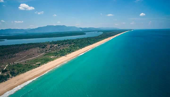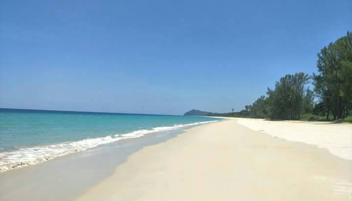 จุดเด่น : เป็นชายหาดขนานไปกับทางหลวงแผ่นดินมีคววมยาวกว่า 13 กิโลเมตร น้ำทะเลใส เล่นน้ำได้