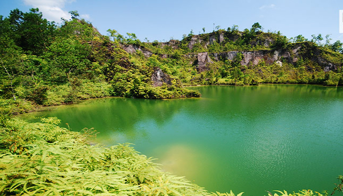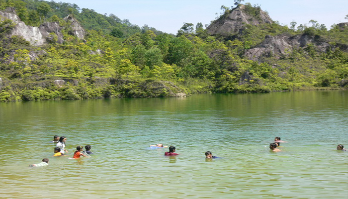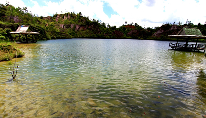 ตั้งอยู่ที่บ้านทุ่งคา ต.หาดส้มแป้น อ.เมือง อยู่ห่างจากวัดหาดส้มแป้นประมาณ 3 ก.ม.ห่างจาก ตัวเมืองประมาณ 15 กม. โดยใช้เส้นทางเดียวกับบ่อน้ำพุร้อนรักษะวริณลักษณะของสถานที่ท่องเที่ยวจะมีความ สวยงามแปลกตา คือ เป็นสระน้ำขนาดย่อม ที่โอบล้อมด้วยหุบเขาเหตุที่นี่เป็นแอ่งน้ำล้อมภูเขาแบบนี้ เนื่องมาจากที่นี่เคยเป็นเหมืองแร่เก่ามาก่อน ลักษณะเป็นเหมืองแบบฉีด โดยฉีดน้ำให้กัดเซาะดินปนแร่จากตัวภูเขาให้ลงมาสะสมในแอ่งน้ำด้านล่าง หลังจากนั้นก็จะสูบน้ำในแอ่งขึ้นตามท่อเพื่อนำมาผ่าน กระบวนการ ทางกายภาพ เพื่อ ทำการแยกแร่ ออกจากทรายที่ไม่มีค่าทำให้สภาพภูเขาเกิดลักษณะเว้าๆ แหว่งๆ สวยงามแปลก