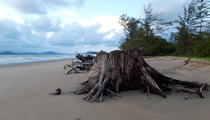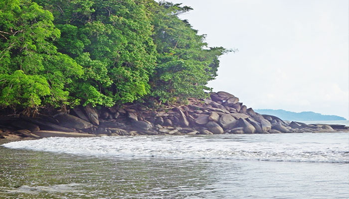 ตั้งอยู่ในเขต อุทยานแห่งชาติแหลมสน เป็นหาดทรายกว้างใหญ่ เต็มไปด้วยทิวสนและลานหญ้าที่กว้างใหญ่ อยู่ปากคลองกำพวนซึ่งมีป่าชายเลนสมบูรณ์ หาดทรายที่กว้างใหญ่ทอดยาวหลายกิโลเมตร ขนานไปกับทิวสนทะเล เป็นบรรยากาศชายทะเลที่ร่มรื่นชวนพักผ่อน สีสันของหาดทรายแม้จะไม่ขาวนักเนื่องจากอยู่ใกลักับป่าชายเลนที่สมบูรณ์ แต่ทิวทัศน์โดยรอบที่สวยงาม ก็ให้ความสุขไม่น้อยกว่าที่ท่องเที่ยวอื่นๆของจังหวัดระนอง