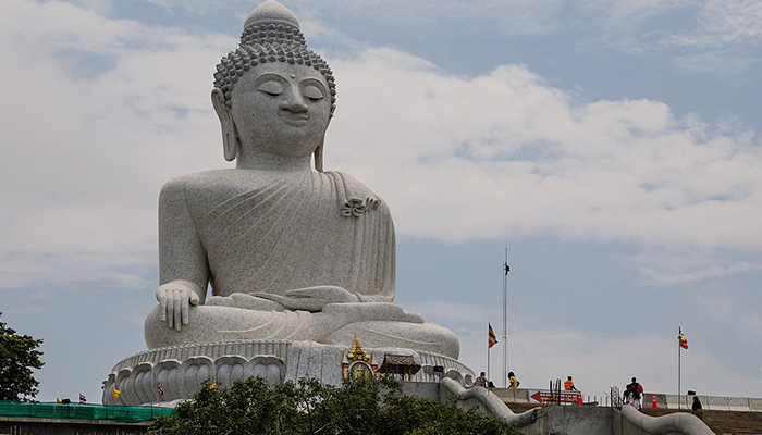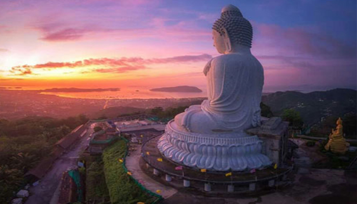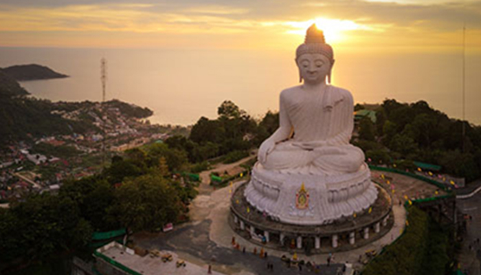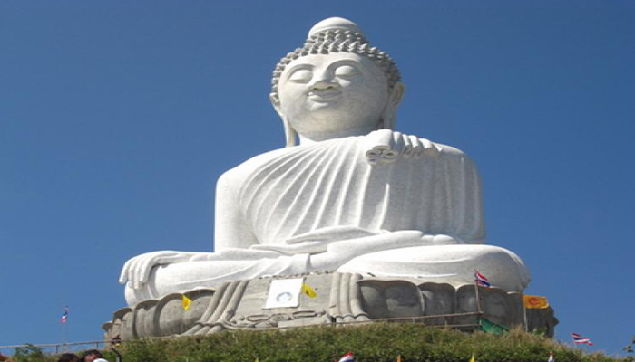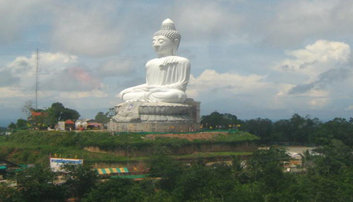 เป็นที่ประดิษฐานพระพุทธรูปปางมารวิชัยที่ใหญ่ที่สุดบนเกาะภูเก็ตเลยก็ว่าได้ โดยองค์พระงดงามไปด้วยศิลปะร่วมสมัย ประดับผิวด้วยหินอ่อนหยกขาวจากประเทศพม่า โดยหินอ่อนขาวมีน้ำหนักราว ๆ 135 ตัน เลยทีเดียว ซึ่งนับเป็นพระพุทธรูปคู่บ้านคู่เมืองที่ตั้งตระหง่านสูงเด่นเป็นสง่าอยู่บน ยอดเขาที่มีความสวยงดงามมากจริง ๆ นอกจากนี้บริเวณด้านบนนักท่องเที่ยวยังสามารถสัมผัสกับทัศนียภาพที่สวยงามของเวิ้งหาดกะตะ แหลมพรหมเทพ เกาะแก้วพิสดารได้อย่างสวยงามอลังการอีกด้วย