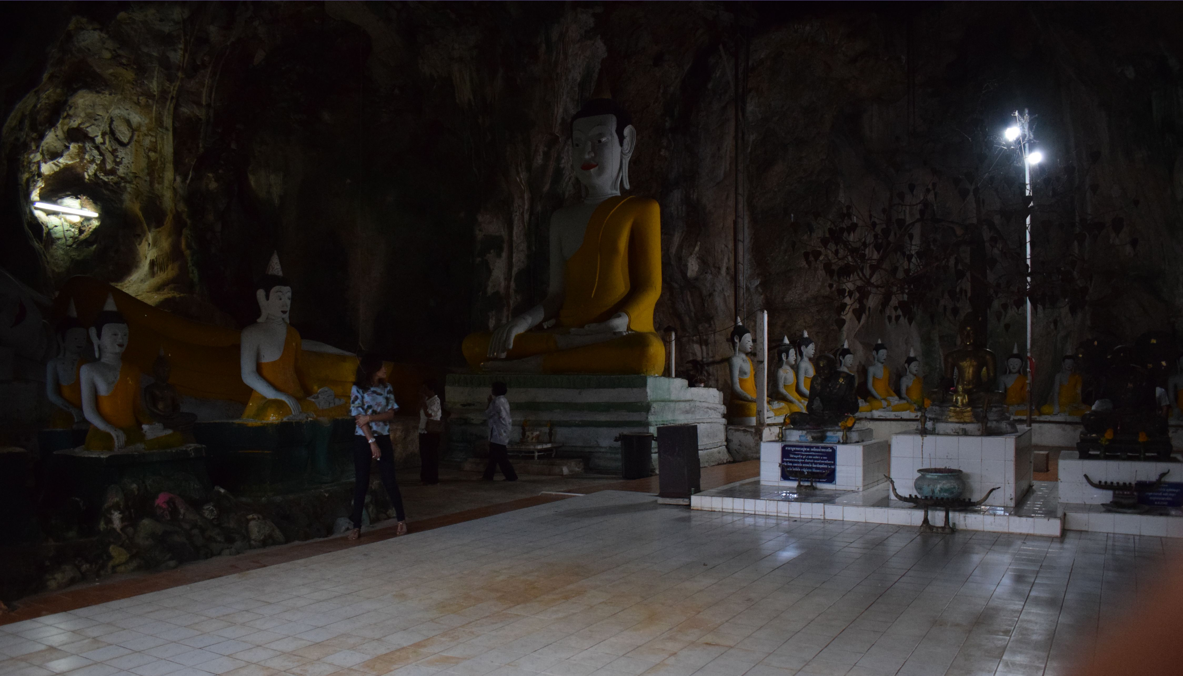 จุดเด่น : บริเวณปากถ้ำมีจารึกพระปรมาภิไธยย่อของพระมหากษัตริย์ไทยถึง 3 พระองค์ด้วยกัน คือ พระบาทสมเด็จพระจุลจอมเกล้าเจ้าอยู่หัว พระบาทสมเด็จพระปกเกล้าเจ้าอยู่หัว และพระบาทสมเด็จพระเจ้าอยู่หัวรัชกาลปัจจุบัน พร้อมด้วยสมเด็จพระนางเจ้าสิริกิติ์พระบรมราชินีนาถ นับเป็นความปลื้มปีติของชาวพัทลุงเลยทีเดียว ส่วนภายในถ้ำนั้นประดิษฐานพระพุทธรูปปางไสยาสน์องค์ใหญ่ 1 องค์ และพระพุทธรูปปูนปั้นองค์เล็กทำจากดินเหนียว วางเรียงแถวเป็นระเบียบทางด้านทิศเหนือ ทิศใต้ และทิศตะวันตก รวมทั้งหมด 37 องค์ ให้นักท่องเที่ยวได้สักการะ